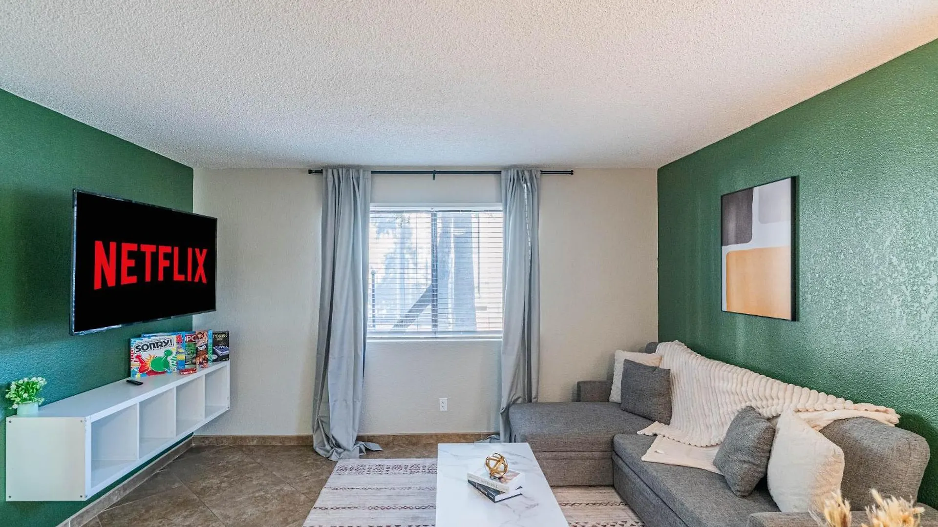Per la vostra comodità, l'appartamento comprende una cucina completamente attrezzata con una lavastoviglie e un forno. L'appartamento Near Casino Pool Gym Balcony Parking Washer Dryer è accanto alla stazione degli autobus Granite Reef Senior Center. Gli ospiti sono invitati a rilassarsi in un patio.